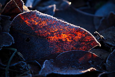 Backlit frosty leaf. November 2011, LuleĆ„. © Anders Torger.