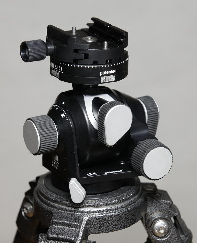 Perhaps the most interesting competition is the KPS T5. It has the required quality, and it's cheaper than the D4 although not so much that it becomes a factor. The D4 is a bit more flexible in movements, but the weight of the KPS T5 is claimed to be 772 grams, that is 190 grams lighter than the D4. If you hunt for low weight you should definitely look into that. When you use heavy camera gear like myself gaining 200 grams on the head doesn't really matter for the total weight. However the tripod may become more balanced when you carry it, and if you carry it on a backpack on the side or on the back far out from your body shaving off a few hundred grams can make a difference in carrying ergonomics. If you have a heavy camera, like a view camera, and is looking for a stable platform without any issues with play it's a bit depressive to see that the cheapest working alternative is KPS T5 at about 800 USD, which with import taxes may become significantly more depending on where you live, but that is the deal if you want geared axes. That is even if the D4 is an expensive head, the competing products with similar quality and feature sets also have similar prices. Long-term reportAt the time of writing I've used the D4 for more than a year. I've had no real issues, and I've learned to like the screw clamp which I was not too fond of in the beginning due to the smallish knob.No problems yet, but it's clear that the rubber on the knobs will eventually give out, and I've heard such reports from the Arca-Swiss Cube. It should take many years and should be serviceable though. The head does not come with any protective cover, and I've carried it on the tripod "naked" most of the time. This means that from time to time you knock the head into trees etc. This is not ideal for the head with knobs sticking out here and there. My D4 is still working fine despite having a few hits, but I'd recommend to make some home-made protective cover with padding to protect it better. I've heard that one quality issue is that the screw heads may rust. I have not had such problems, but then I don't use it in salt water conditions so I can't really say anything about that. When I come in from a rainy session I wipe off the worst and let it air dry in room temperature, that has worked well so far. I've used it in quite cold conditions (-30C). In general geared equipment sometimes get overly stiff in cold conditions due to stiffening oil, but I haven't experienced such problems with the D4. The gears do get stiffer, but not too much. I actually don't use the top pano as much as I thought I would. The "standard use case" is to level the camera with the gears, and then adjust direction with the top pano. However, to avoid that the geared axes get in a strange orientation compared to the camera you only want to make fine-tunings with the top pano, and when you only do that the bottom pano is quite fine too as small adjustments don't necessarily disturb the leveling that much. It does require that you set up the tripod fairly level, which I do in any case to maximize its stability. I do use the top pano from time to time for fine-tuning, but if it wasn't there I wouldn't suffer too much from it except when the camera is pointed in vertical orientation when it's needed for this head. If I would do stitched panoramas (which I generally don't) the top pano would be more used too. This means that the lack of top pano of the KPS T5 and Manfrotto 410 is not that bad after-all. Concluding discussionThe D4 is an excellent tripod head for landscape, architecture and macro field work. Thanks to the unlocking capability it can also lend itself to other use cases like panning telephoto work where you can have the yaw and pitch free but keep the horizon stable (unlike with a ball head). If you would only own one head and do many styles of photography with both heavy and light gear this head will probably serve you better than anything else on the market.The quality is very high and it can handle heavier cameras with less vibration issues than lower cost heads, despite that the head itself typically weighs considerably less. This is what you pay for. If you have a camera system that weighs 2 kgs or less and weight and compactness is not so important there are cheaper geared heads that can do just as well though, such as the very economical Manfrotto 410. With light gear I'd also suggest to have a look at the lightweight Sunwayfoto GH-Pro head. Compared to larger geared heads there is some compromise in ergonomics to get a more compact and light head, so for studio work there are better alternatives, mainly Arca-Swiss own C1 Cube. While the head has excellent design not to be found elsewhere, many find the Arca-Swiss quick-release system to be mediocre compared to the competition. It works so you can live with it (and some even think they are good), but there is no coincidence that substituting a Really Right Stuff clamp (for example) on Arca-Swiss heads has been a very popular user modification. Unfortunately Arca-Swiss nowadays glue the bolt to hinder such user modification. If you want to replace the clamp talk to the dealer before buy. |